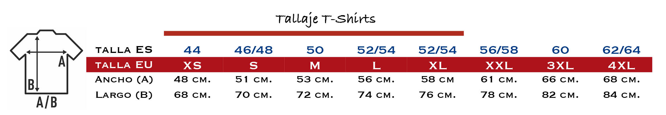 Tallas T-Shirts: